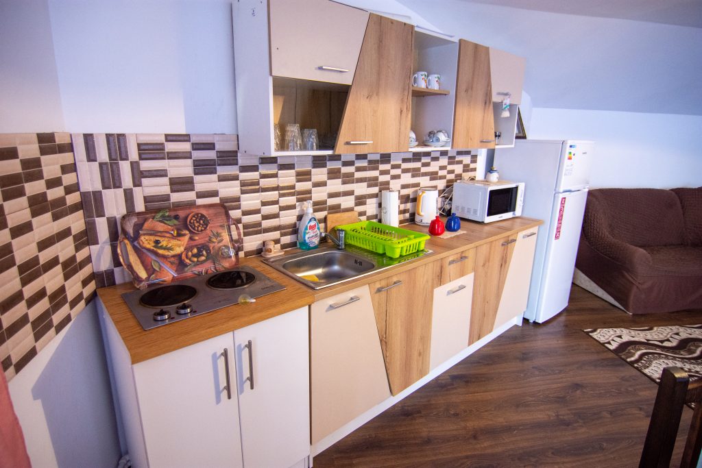 Există un loc special amenajat, pentru prepararea grătarului, care dispune de toate ustensilele necesare.